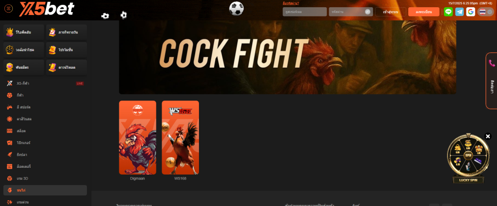 เว็บไซต์พนันแห่งนี้เป็นหนึ่งในไม่กี่แพลตฟอร์มที่ได้รับอนุญาตให้ถ่ายทอดสดการแข่งขันไก่ชนจาก CPC1, C1 Thailand, X5BET และอื่นๆ ผู้เล่นไม่เพียงแต่สามารถรับชมการแข่งขันที่น่าตื่นเต้นเท่านั้น แต่ยังสามารถเข้าร่วมการเดิมพันสดด้วยอัตราต่อรองที่น่าสนใจและเพลิดเพลินไปกับบรรยากาศที่คึกคักของสนามชนไก่ได้อีกด้วย